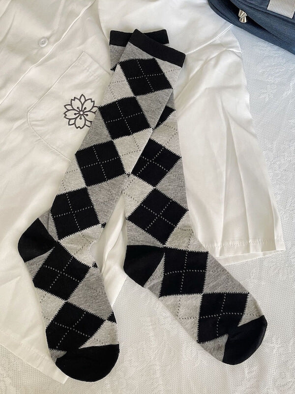 Experience ultimate comfort and style with JK school plaid knee-high socks. These socks are a must-have for any school wardrobe, providing both practicality and fashion-forwardness. Step into the school hallways with confidence and make a statement with these vibrant and trendy knee-high socks.