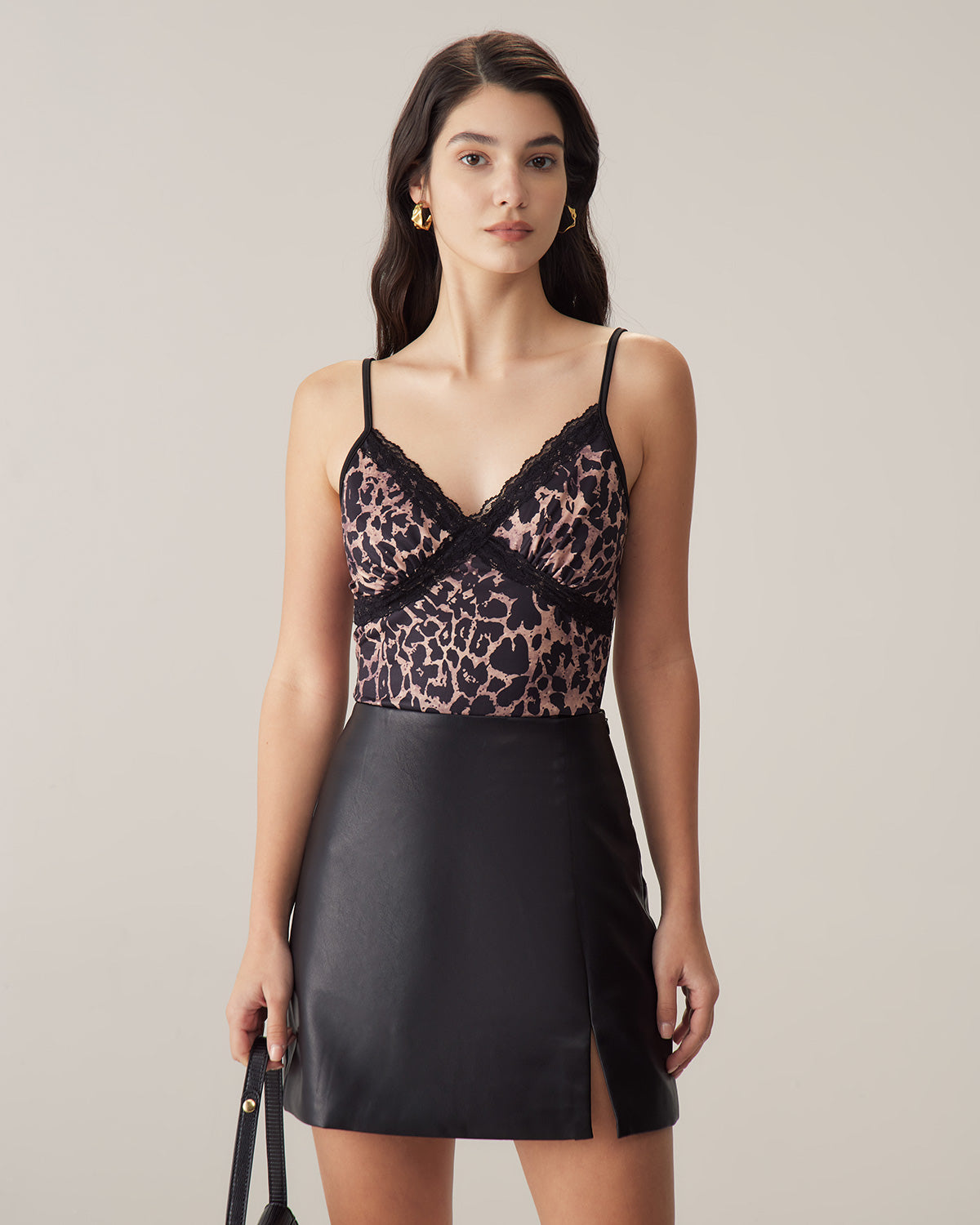 Crafted from soft, breathable fabric, this slim-fit top features delicate lace detailing along the neckline and straps for a romantic touch. The rich brown hue adds warmth and sophistication, making it a versatile piece for any wardrobe.