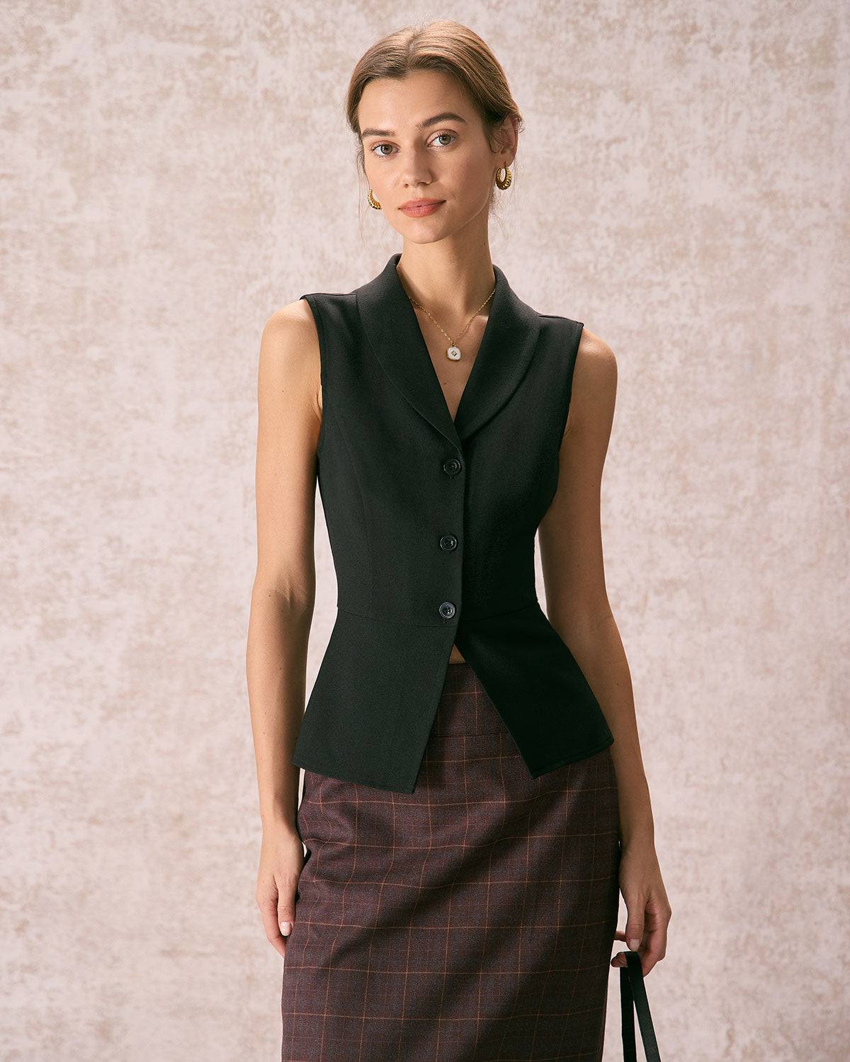 For a more laid-back take on an everyday chic staple, may as well add this to your wardrobe. Designed with sleeveless, slim fit and solid color, this vset is versatile for daily casual wear. Also, its button and lapel design adds a sense of design to it, great for matching your high-waisted pants.